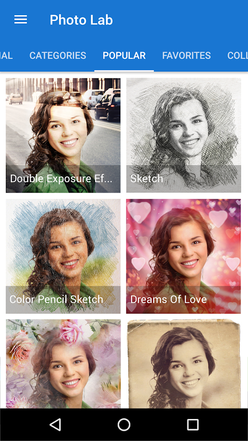 New filters and frames are added with each renewal of the application. If not can find an effect or photomontage that want, writes us and can be that it add in the version following. Us like receive opinions from our users that we help make Photo Lab the best editor of photos in Google Play!